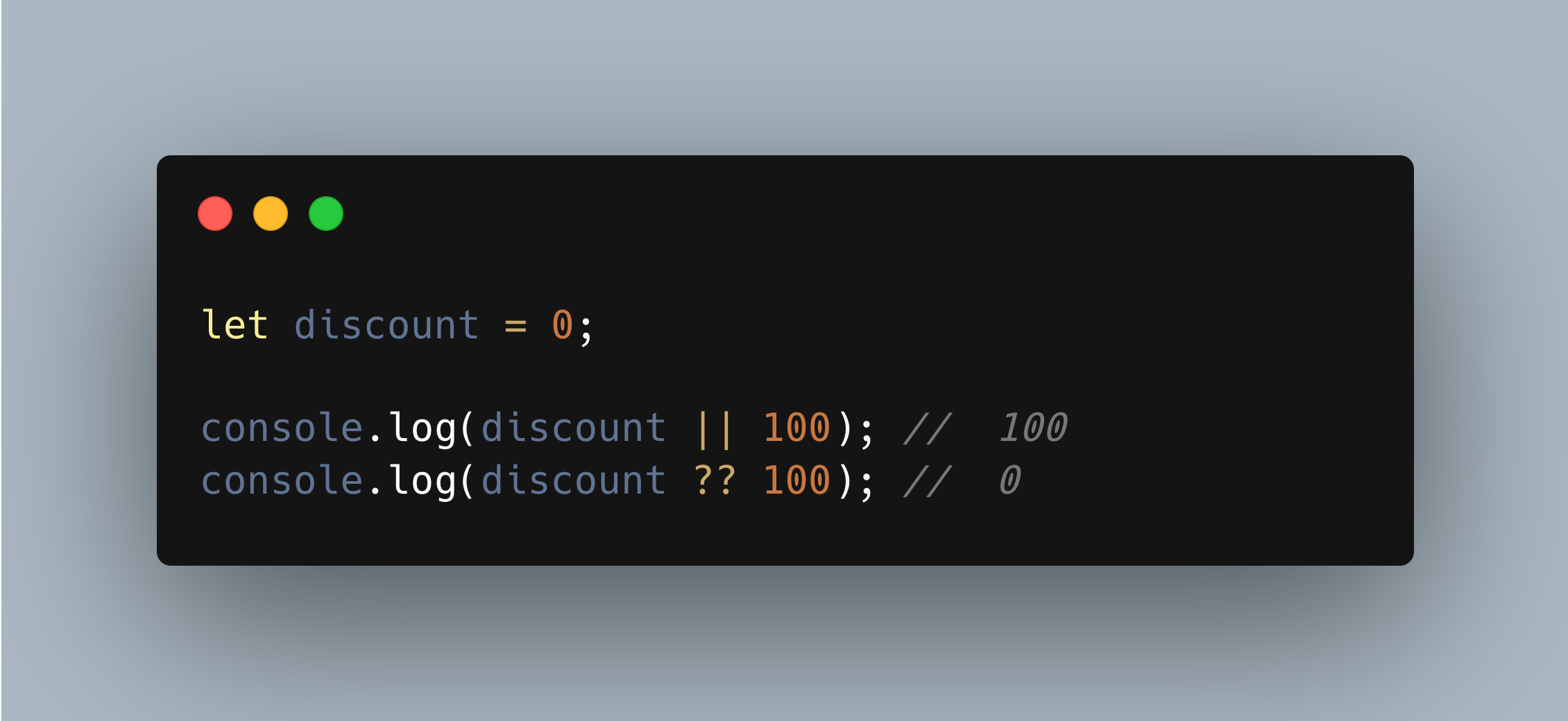 discount = discount ?? 10 // assigns discount as 10 if its null/undefined